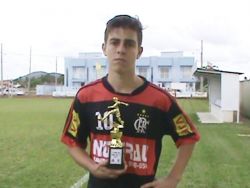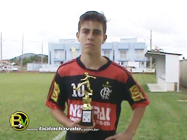 Autor do segundo gol do Flamengo, na vitória da equipe sobre o Joáia pelo placar de 2 a 1, na partida de volta das semifinais do XI Campeonato Municipal de Futebol SUB 17 de Tijucas 2014, taça site Bola do Vale, realizada na tarde deste ultimo sábado (4) de outubro no estádio Miguel Ezequiel de Simas, o atleta Gabriel Machado Comper (Careca) foi eleito o craque do jogo pela equipe do site bola do vale. Além de marcar um belo gol de falta, o meio campista comandou a equipe rubro negra na vitória. O camisa 10 marcou três gols na competição e foi um dos destaques da equipe do Flamengo no campeonato. Confira abaixo o vídeo e reveja o gol de falta do atleta na partida: Na foto o atleta recebendo o troféu.