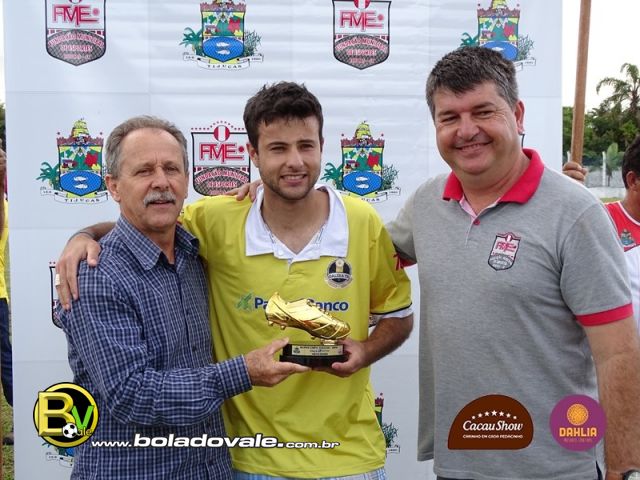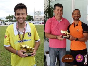 Ambos com 4 gols marcados, os atletas João Gabriel de Souza e Anderson Michel da Costa (Mainha), foram os artilheiros da VII Super Copa Tijucas de Futebol Taça Rádio Vale 2016. O atleta Mainha, era líder absoluto da artilharia da competição, mais no jogo de ida da final João Gabriel marcou mais um gol e igualou os números. Na grande final, João Gabriel recebeu o prêmio de artilheiro de entidades presentes no evento. E por motivos particulares, Mainha não pode estar presente na final para receber o prêmio. Vejam abaixo, a foto dos artilheiros com seus troféus.